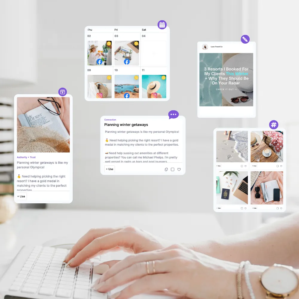 Our team of marketing experts handles the strategy behind your captions, Reels, and graphics so you can focus on being a travel pro, not a marketing pro.